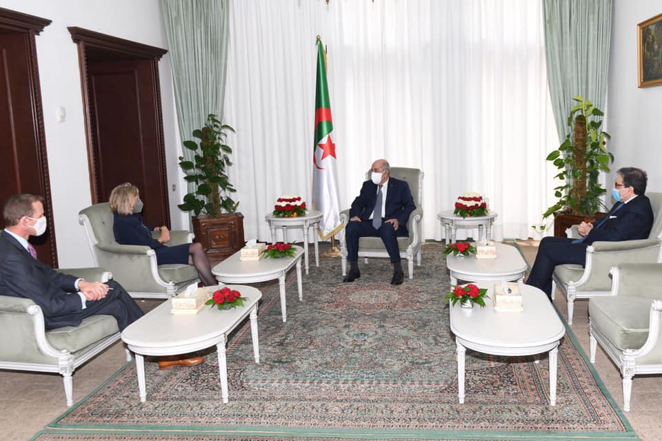 .”Le président de la République, M. Abdelmadjid Tebboune, a reçu, lundi après midi, l’ambassadeur des Etats-Unis en Algérie, John P. Desrocher”. Lors de cette audience, les deux parties ont passé en revue les relations bilatérales ainsi que la situation en Libye et dans la région». Dans le même contexte toujours, le Président de la République, Abdelmadjid Tebboune a reçu également hier à Alger l’ambassadrice de la République fédérale d’Allemagne en Algérie, Mme Ulrike Maria Knotz, Les deux parties ont aussi examiné lors de cette audience les relations bilatérales et la situation dans la région, notamment les développements survenant en Libye.