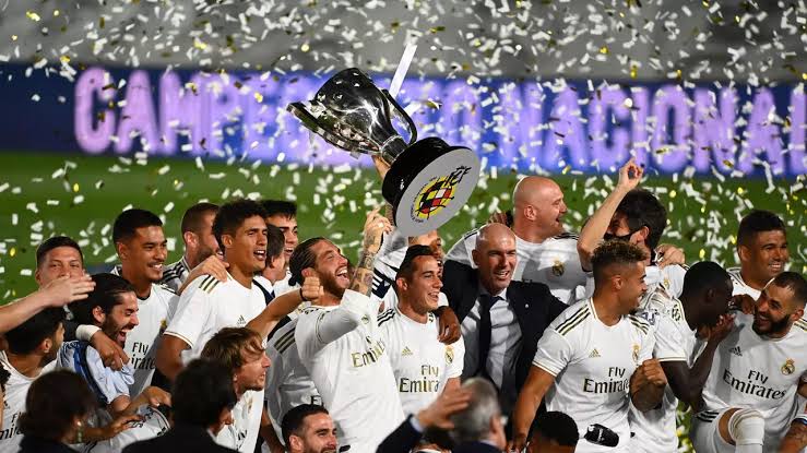 Le Real Madrid est sur le toit de l’Espagne. Grâce à sa victoire contre le Villarreal (2-1) ce jeudi soir, le club entraîné par Zinedine Zidane remporte sa 34e Liga. Les Merengues ont gagné grâce à un doublé de Karim Benzema (29’, 77’ SP). Villarreal a réduit la marque à la 83e par Iborra et aurait dû égaliser dans le temps additionnel, mais le gardien Thibaut Courtois a sauvé miraculeusement son équipe. Dans le même temps, le FC Barcelone s’incline à la surprise générale sur son terrain contre Osasuna (1-2). A une journée de la fin de la Liga, avec 86 points, le Real Madrid ne peut plus être rejoint par le FC Barcelone (2e, 79 points).C’est le 2e titre de Zidane en tant qu’entraîneur du Real Madrid, après celui de 2017.