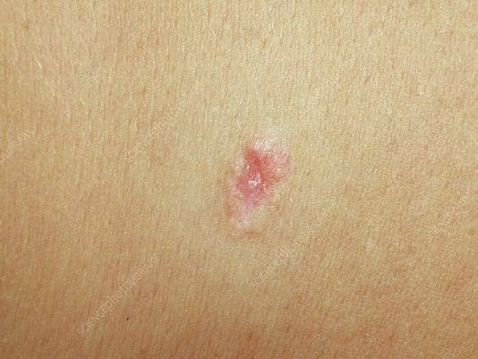 Un carcinome basocellulaire est un cancer qui apparaît à la surface de la peau sous forme d’une papule croûteuse. Il fait partie des sous-groupes de carcinomes, avec le carcinome spinocellulaire. Il a la particularité de ne pas produire de métastases.